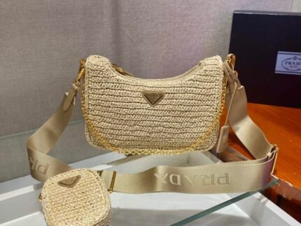 Replica Prada 1BH204 Prada Re-Edition 2005 Raffia Bag in Apricot