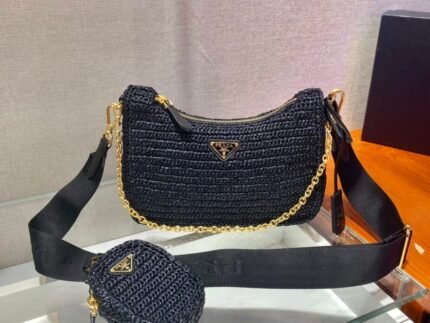 Replica Prada 1BH204 Prada Re-Edition 2005 Raffia Bag in Black