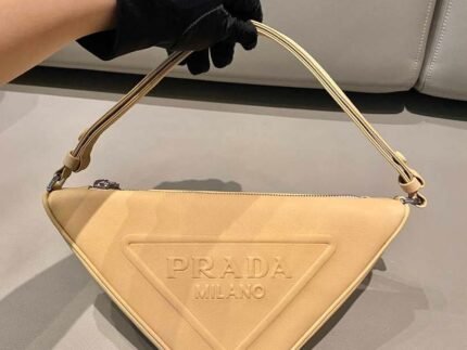 Replica Prada 1NQ043 Triangle leather pouch Apricot