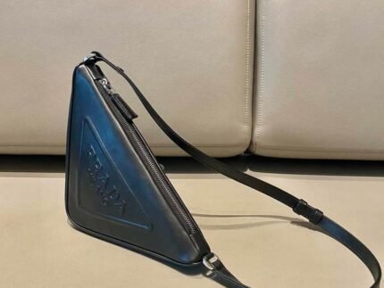 Replica Prada 1NQ043 Triangle leather pouch Black