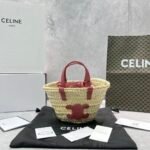 Celine Teen Triomphe Classic Pannier Tote Dark Pink For Women 8in/20cm