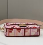 Iconic medium Baguette bag made of pink canvas with a multicolor raised embroidery FF motif, trimmed in tone on tone. Decorated with an FF clasp. Can be carried by hand, or worn either on the shoulder or cross-body thanks to the handle and shoulder strap, both detachable.