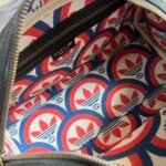 Part of the adidas x Gucci collection, this mini duffle bag features the ‘Gucci adidas’ and Trefoil print. adidas and Gucci venture into a collection, where the Web juxtaposes with the three white stripes, and the GG monogram combines with the trefoil. Pulling inspiration from the Creative Directorās memories of the ’80s and ’90s, emblematic Houseās motifs mix with those of the historic sportswear brand adidas resulting in a series of hybrid looks.