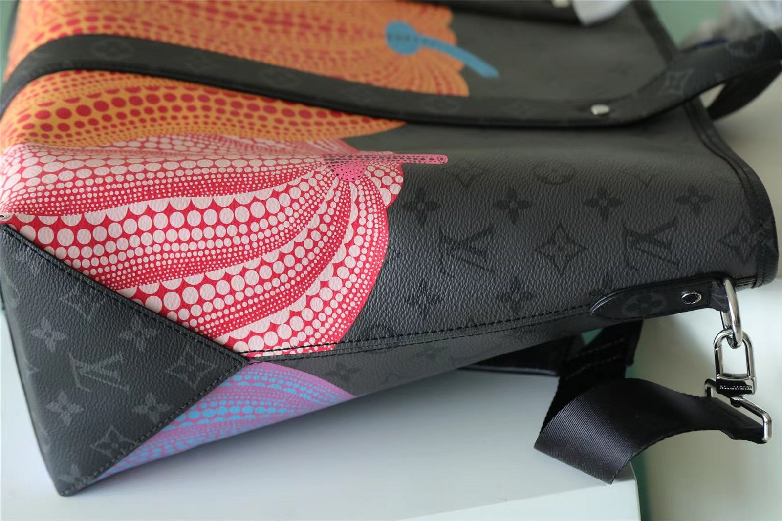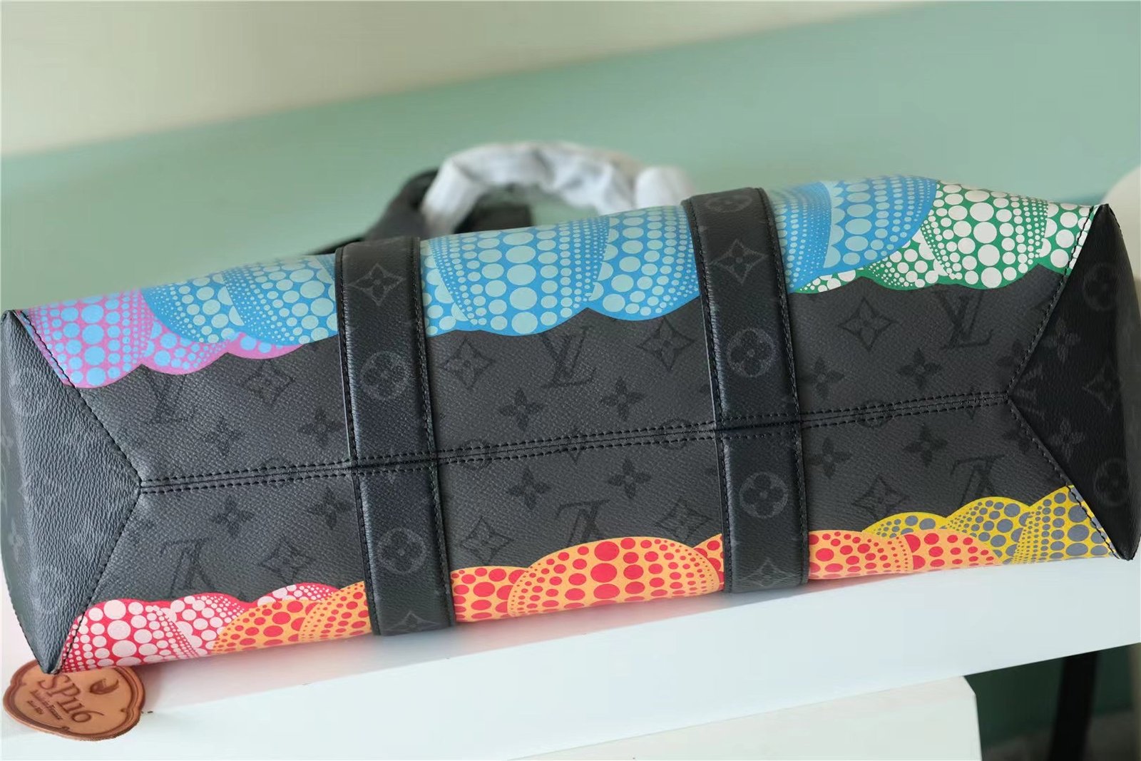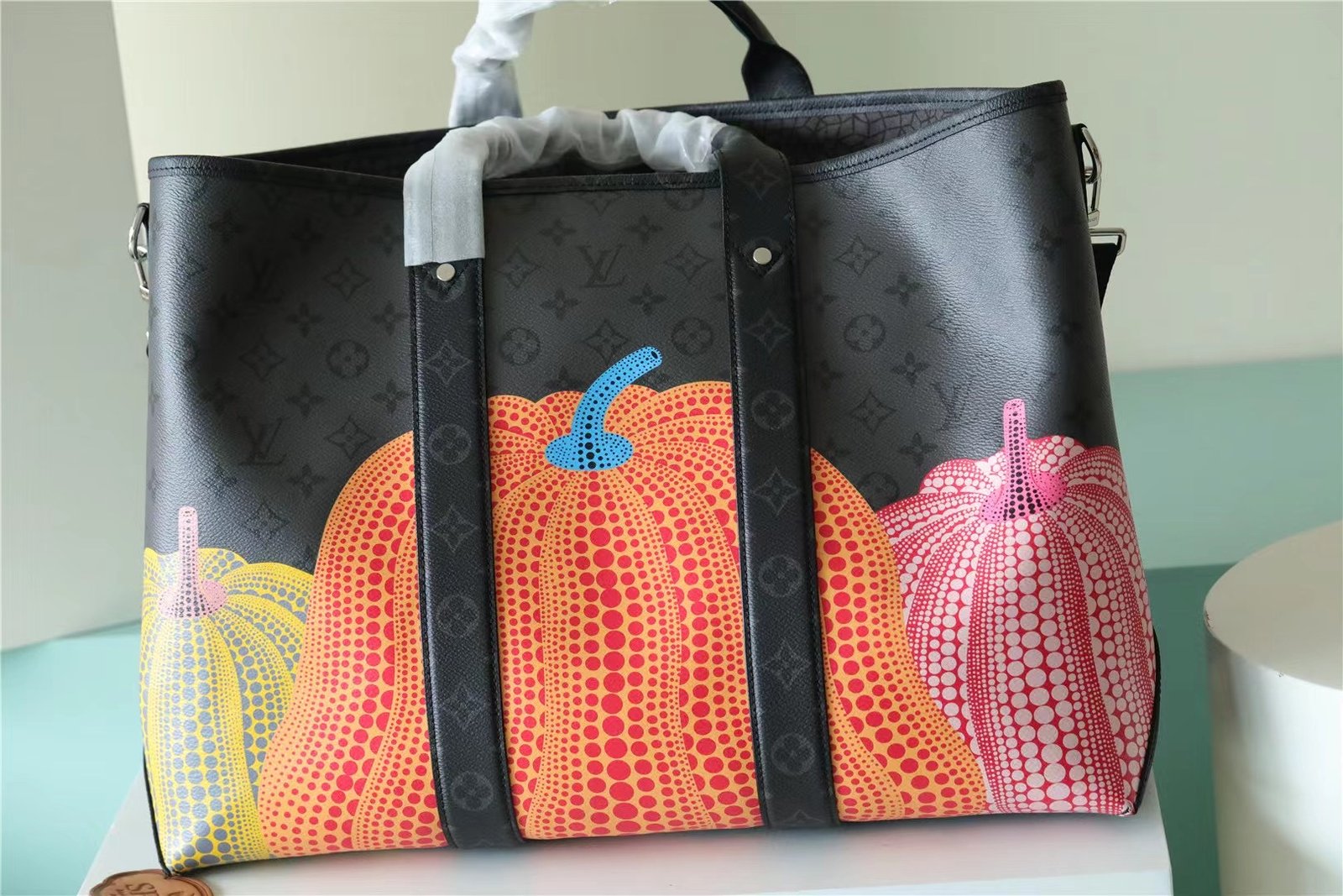• Created for the exclusive Louis Vuitton x Yayoi Kusama collection, the LVxYK Weekend Tote combines two timeless icons: the House’s historic Monogram pattern and the Japanese artist’s emblematic pumpkins. Kusama has been fascinated with pumpkins since childhood, enchanted by their warm, human-like quality. For this capacious, practical tote, a colorful pumpkin print gives Monogram Eclipse Reverse canvas a playful graphic presence. A collector’s item for art lovers and Monogram fans.