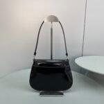 The Prada Cleo bag with sophisticated allure reinterprets an iconic design of the brand from the 1990’s. Sleek curved lines emphasized by the particular construction rounded on the bottom and sides give this flap bag a soft, light look. Brushed , a modern and versatile material that is distinctive in Prada collections, is ideal for creating always new combinations and contrasts. The enamel triangle logo decorates the silhouette.