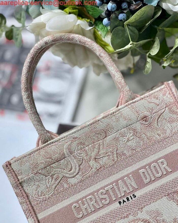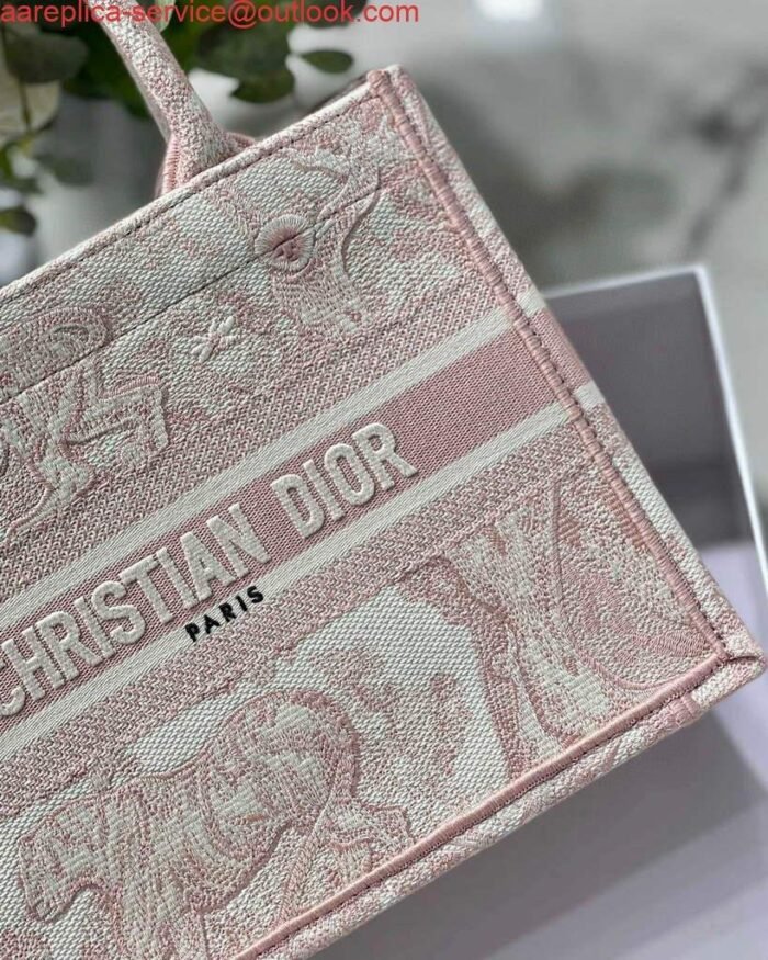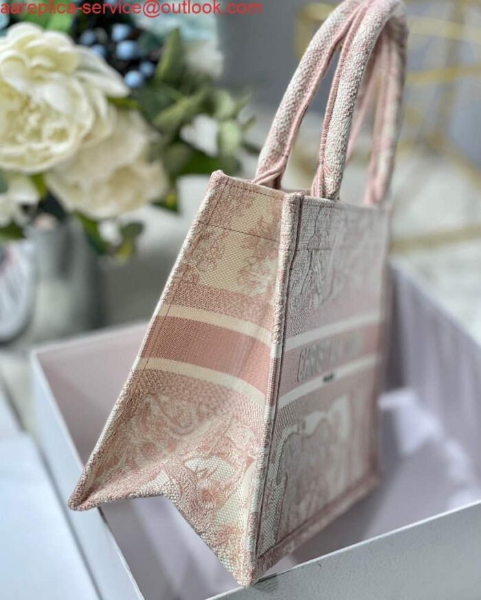 Replica Dior Book Tote M1265 Small Dior Toile De Jouy Reverse Embroidery Pink