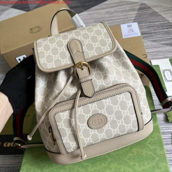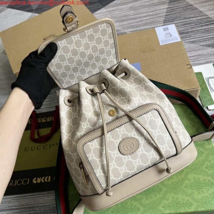 Gucci 674147 Backpack with Interlocking G Beige and white on sale now.
