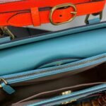 Combining recognizable elements of the House. the medium-sized tote bag is defined by its bamboo handles and Double G hardware. Crafted from black leather. the accessory is further accentuated by two neon bands. a playful reference to the bands used to keep handles in shape.