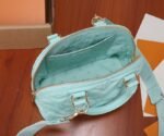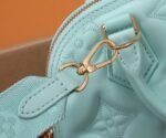 Louis Vuitton LV Alma BB Bag Vert d’Eau Green LV M20855. The eye-catching Alma BB handbag is fashioned from quilted calf leather with an embroidered Monogram pattern. The new colorway will bring a soft. feminine feel to any outfit. The Alma offers two top handles for hand or elbow carry and a removable nylon strap for shoulder and cross-body wear.