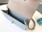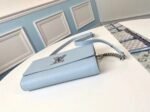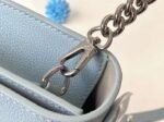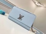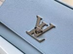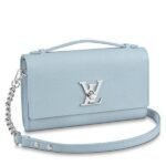 Louis Vuitton LV Blue Lockme Clutch M56136 BLV694. With its iconic LV turn lock and leather top handle for clutch carry. the Lockme Clutch is a striking day-to-evening bag. It boasts a clever strap with press studs to easily adjust the length for shoulder or cross-body carry. The small chain at the end of the strap brings a precious touch for evening occasions.