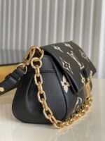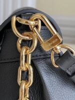 Louis Vuitton LV Favorite Bag Monogram Empreinte M45859 BLV531. The Favorite is a fashionable baguette shoudler bag made from supple grained leather with an oversized embossed Monogram pattern. Feminine pleats bring a couture touch while the gold-color magnetic lock evokes Louis Vuitton??s heritage. A removable and adjustable strap enables short-shoulder carry or cross-body wear while a blod detachable gold-color chain allows more glamorous evening use.