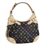 Louis Vuitton LV Greta Bag Monogram Multicolore M40196 BLV590. This elegant Louis Vuitton Monogram Multicolore canvas Greta Bag makes a perfect city bag. With its refined shape. vibrant colors and golden studs. this sleek shoulder bag will hold all your daily essentials in style. It features an adjustable shoulder strap and buckle detailing with natural leather trim all around.