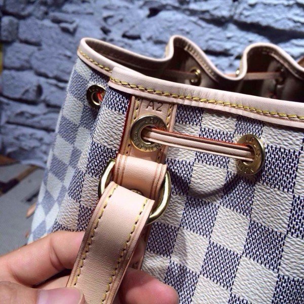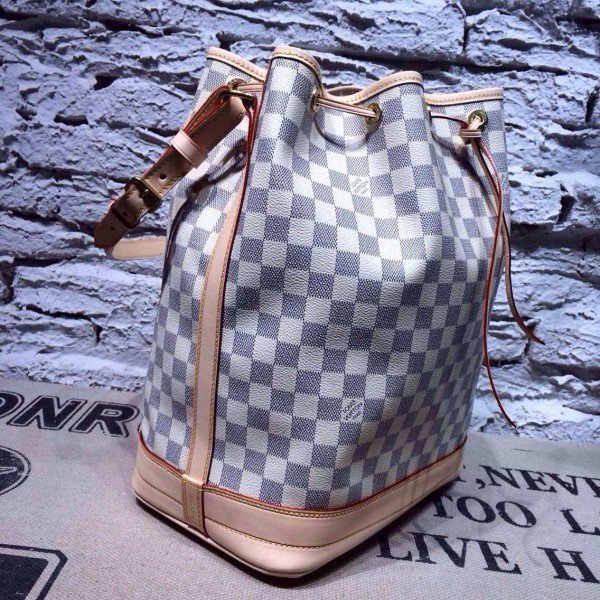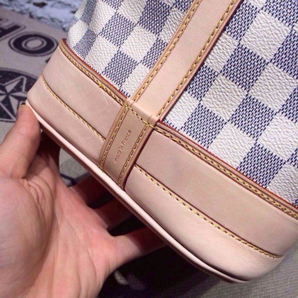 Louis VuittonĀ LV Noe Bag Damier Azur N42222 BLV065. Created in 1932 for holding bottles of champagne.the retro chic elegance of the Noe is further enhanced by the Damier Azur canvas. It features an adjustable strap for carrying on the shoulder.