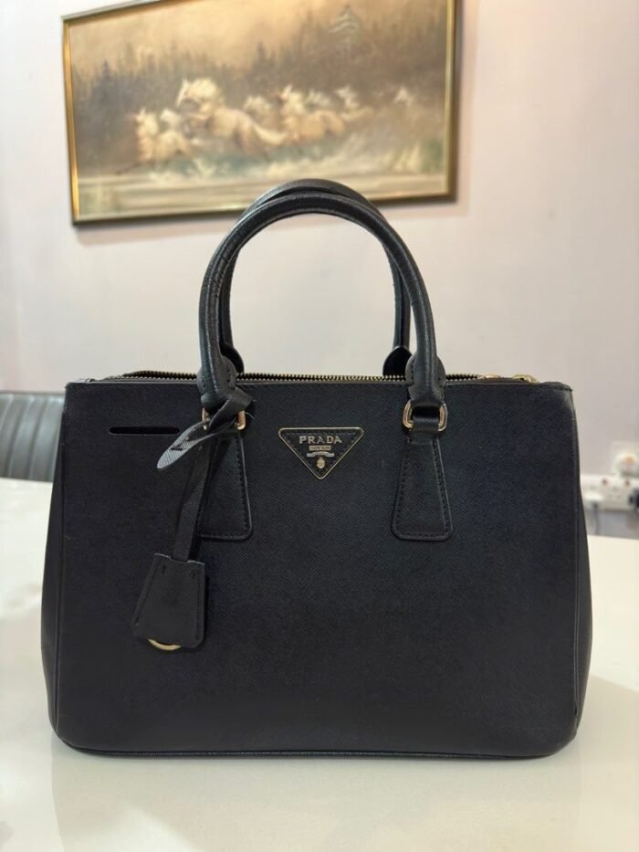 Production of the Prada Galleria bag. composed of 83 pieces. is an authentic fusion between industrial precision and the refined accuracy of craftsmanship that can only be performed by hand. The design is clean and elegant yet innately pragmatic. an aesthetic language blending form and function that combines history and modernity. Originating the definition of “timeless”. the Galleria bag has become a hallmark of Prada’s identity in the twenty-first century. The accessory. presented in the mini version. is made of iconic Saffiano leather that was patented by the founder of the brand and features a crosshatch texture and waxed finish.