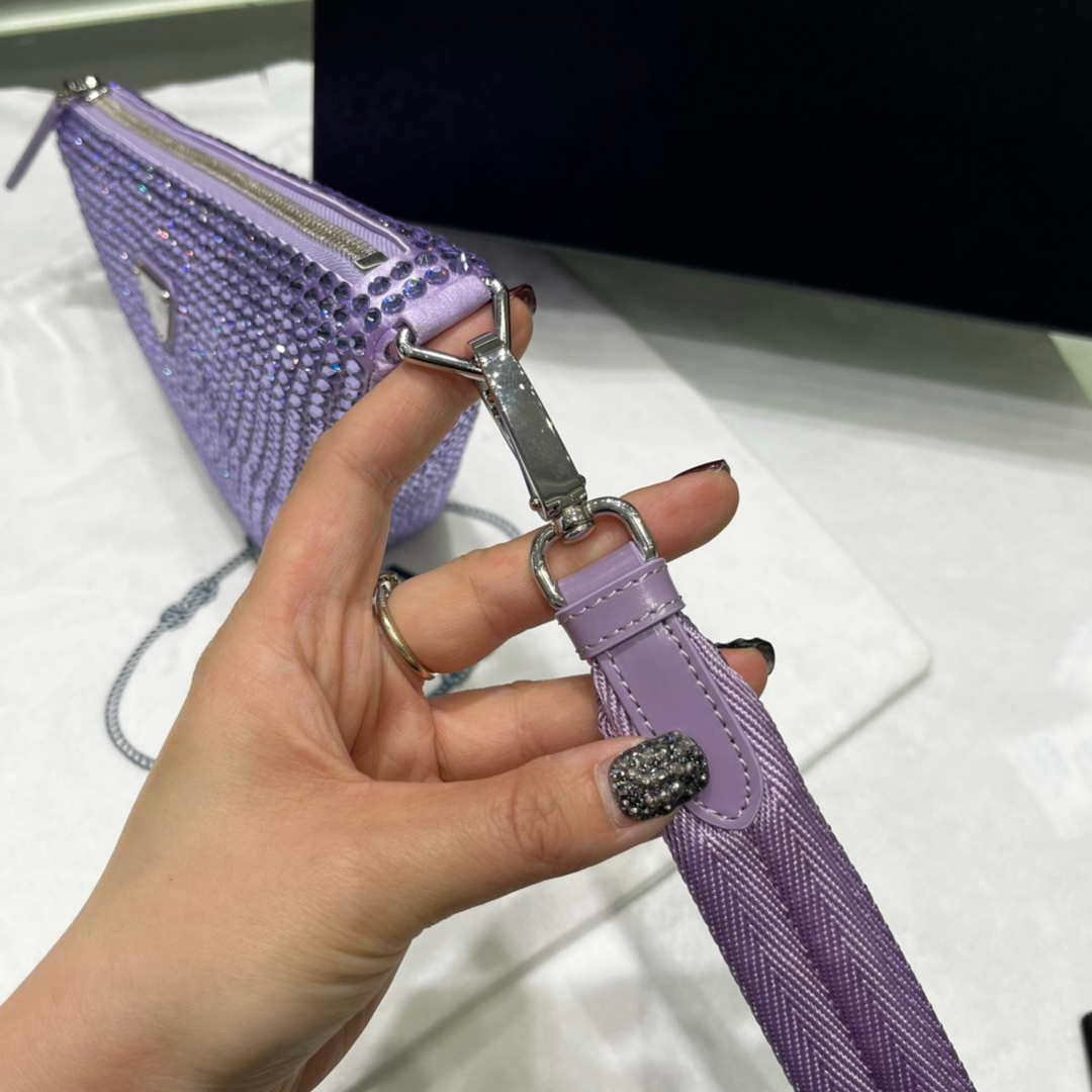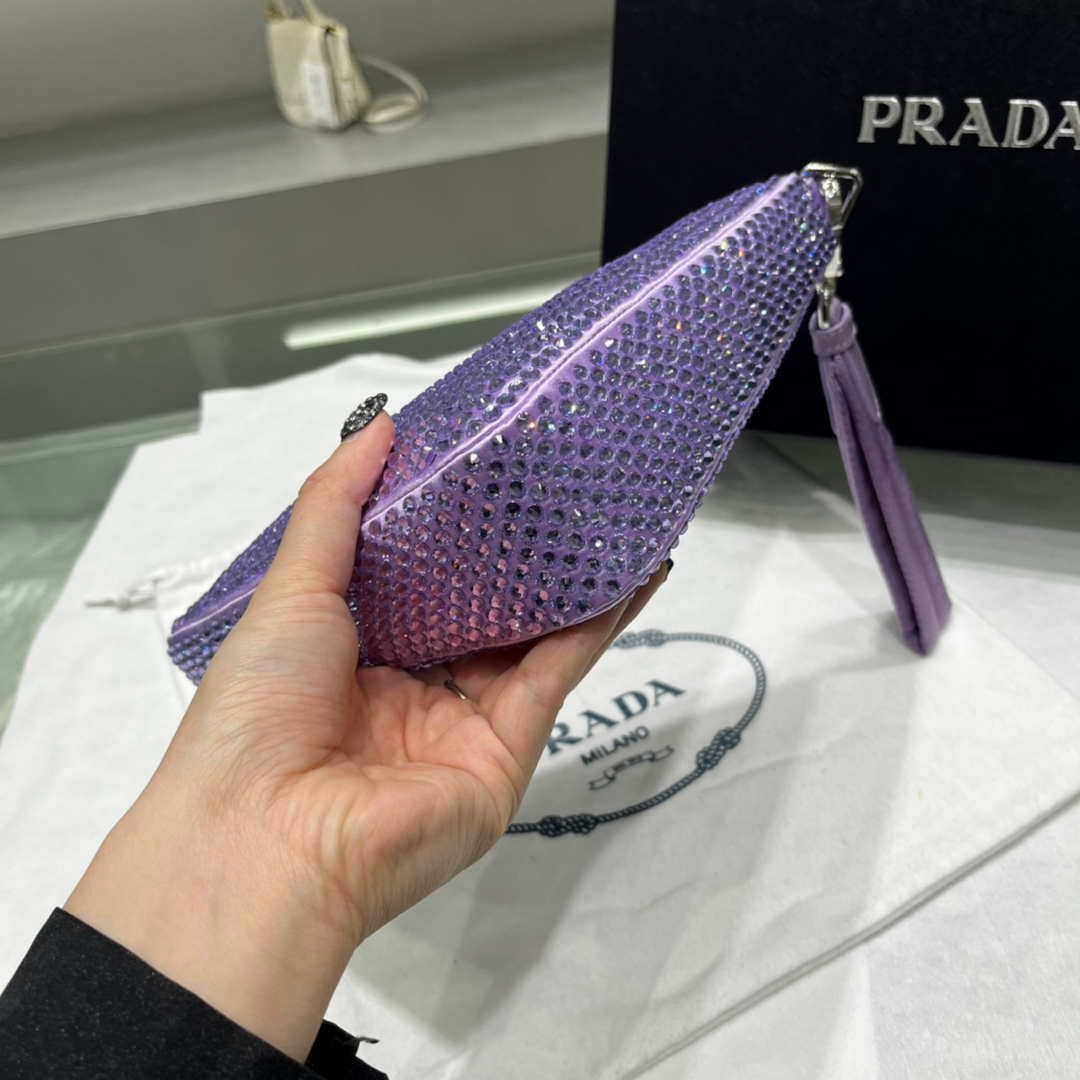 Replica Prada 1NE039 Crystal-studded satin pouch Purple