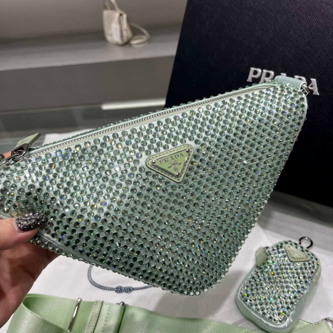 You will get an AAAAA quality knockoff Prada 1NE190 Crystal-studded satin pouch Green with the best price. 1:1 made as the original. If you are not satisfied with the product you received. please be sure to contact us. we promise to solve the problem for you. We are confident that you will adore our products and that we can establish a long-term business relationship with each other.
