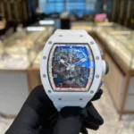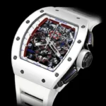 The RM011 Asia Exclusive is a limited edition piece from Richard Mille. Crafted with a white ceramic case and middle carbon TPT. The RM011 runs on the RMAC1 caliber which has automatic winding movement with adjustable rotor geometry. This luxury timepiece is an elegant expression of functionality and sophistication.