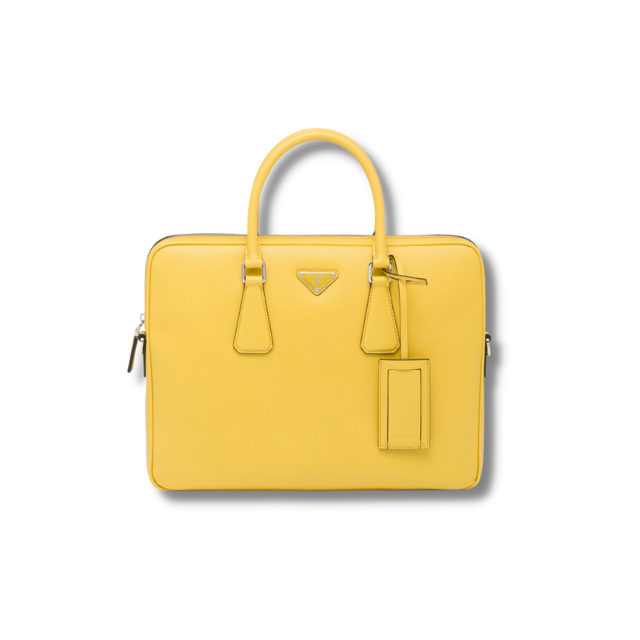 Prada Saffiano Leather Work Bag Yellow For Women- 2VE368_9Z2_F0PG8_V_OOX
