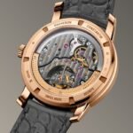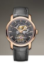 Avant-garde aesthetics, mechanical rigor, and a desire to share creativity and expertise are at the heart of this Traditionnelle Tourbillon Retrograde Date Skeleton. The aperture, in shades of rocky gray with a NAC finish, reveals the structure of the 2162 R31 caliber on both sides of the watch, making its mechanical power readily apparent. The retrograde calendar display and the tourbillon complement each other in a style that is both functional and contemporary.